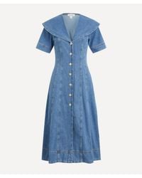 Go to AnthropologieBy ALIGNE 100% Organic Cotton Button front Shawl collar Side seam pockets Machine wash Imported Sparrow Button-Front Denim Midi Dress by ALIGNE in Blue, Women's Size: Uk 8, Cotton at Anthropologie Colour: blue