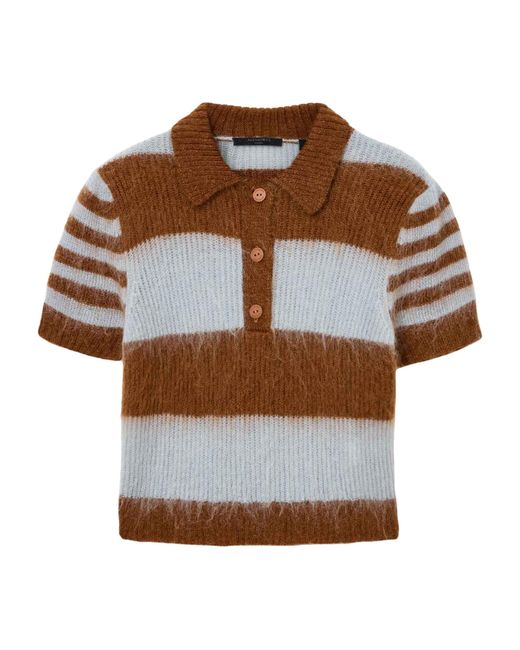 Inject your knitwear rotation with a graphic array of stripes, courtesy of AllSaints’ Clem polo jumper. Spun from a blend rich in wool and mohair, the short-sleeve piece offers a cosy alternative to a T-shirt as you brace for the transitional months. Colour: brown