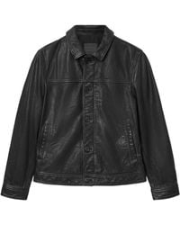 AllSaints Men's Black Nates Buttoned Leather Jacket