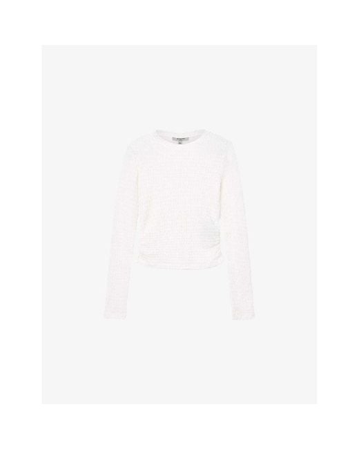 Women's White West Ruched Long-Sleeve Stretch-Cotton Top