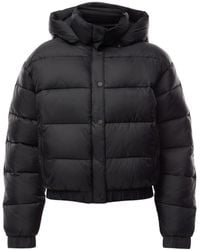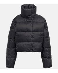 Alo Yoga nylon jacket100% nylon; filling 100% polyesterPressed stud fasteningRegular fit, funnel neck, detachable hood, long sleeves, zip pockets at front, paddedMachine wash coldTrue to sizeModel is 5ft 10in/1.78m and wears a size smallHeavyweight, non-stretch Colour: black