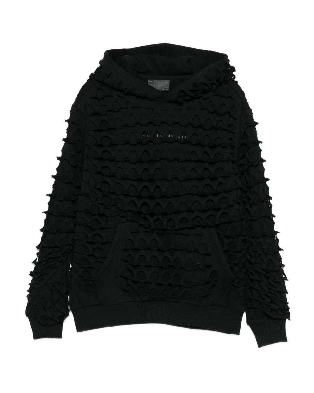 Black cut-out detail front pouch pocket long sleeves ribbed hem ribbed cuffs Size: XS. Gender: Unisex. Material:Cotton/Polyester. Colour: black