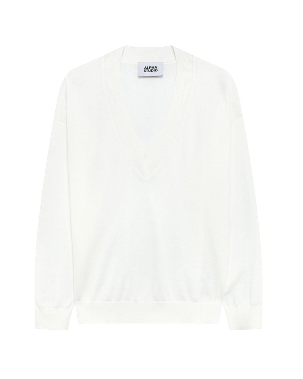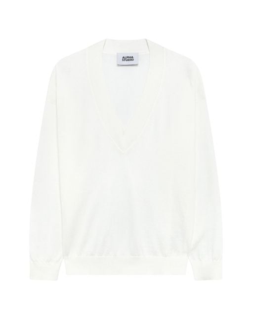 Maglia V Latte Alpha Studio relizzata in 100% cotone tinta unita. Colour: white