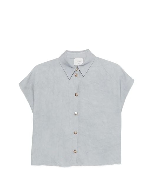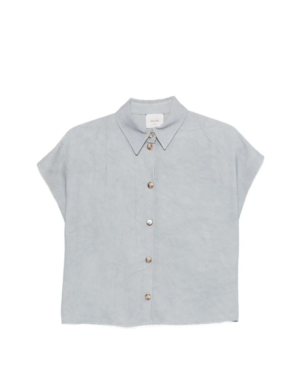 Light blue button fastening short sleeves classic collar Size: 42. Gender: Female. Material:Viscose/Polyester/Cotton.