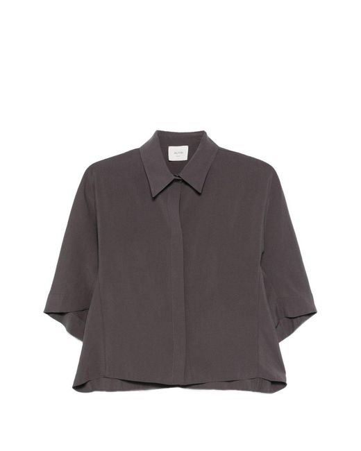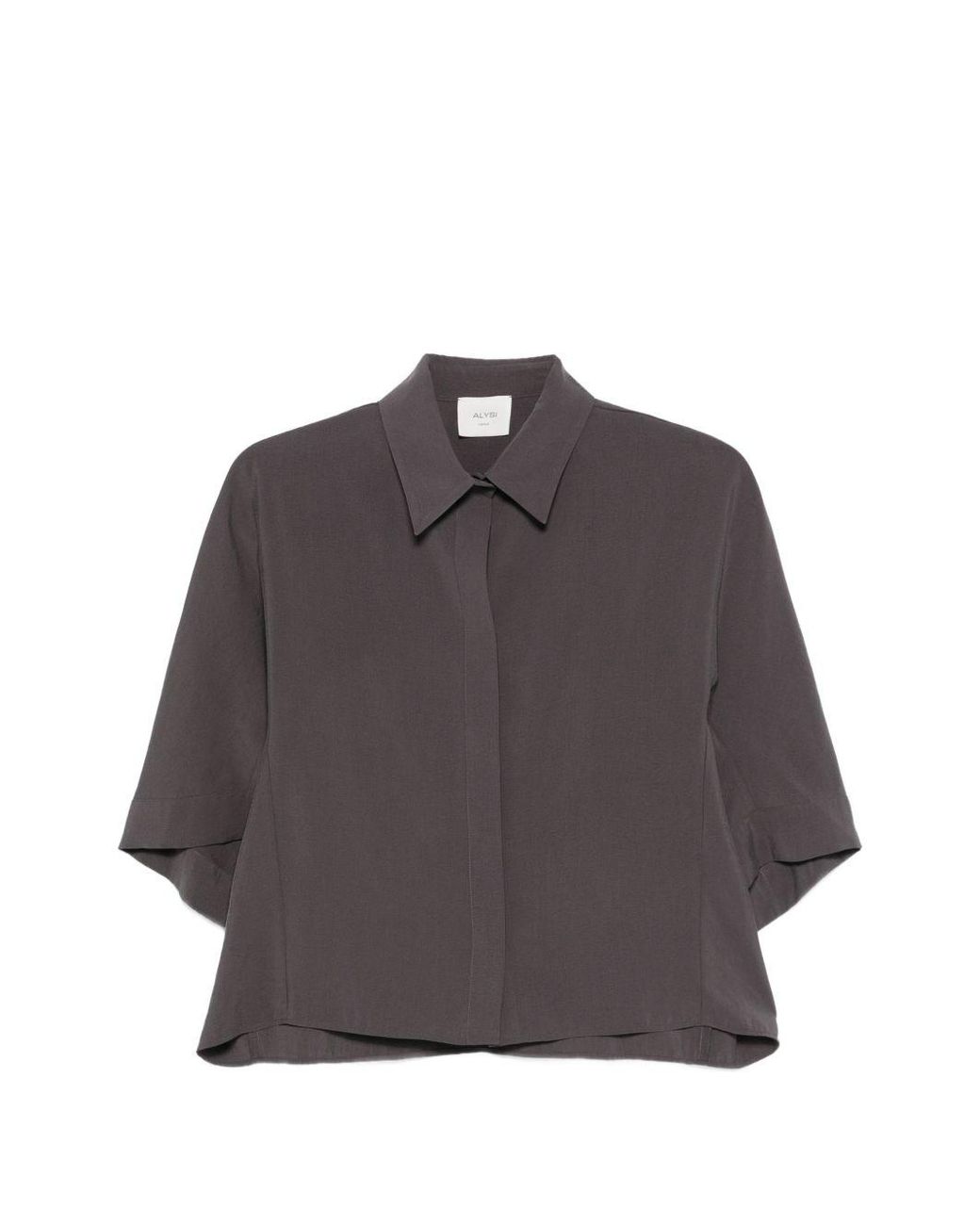 Grey silk concealed button fastening short sleeves boxy cut straight hem Colour: Blacks and greys Composition: 85% Modal 15% Polyester Country Of Manufacture: Italy MPN: 116236P6045GRAYP