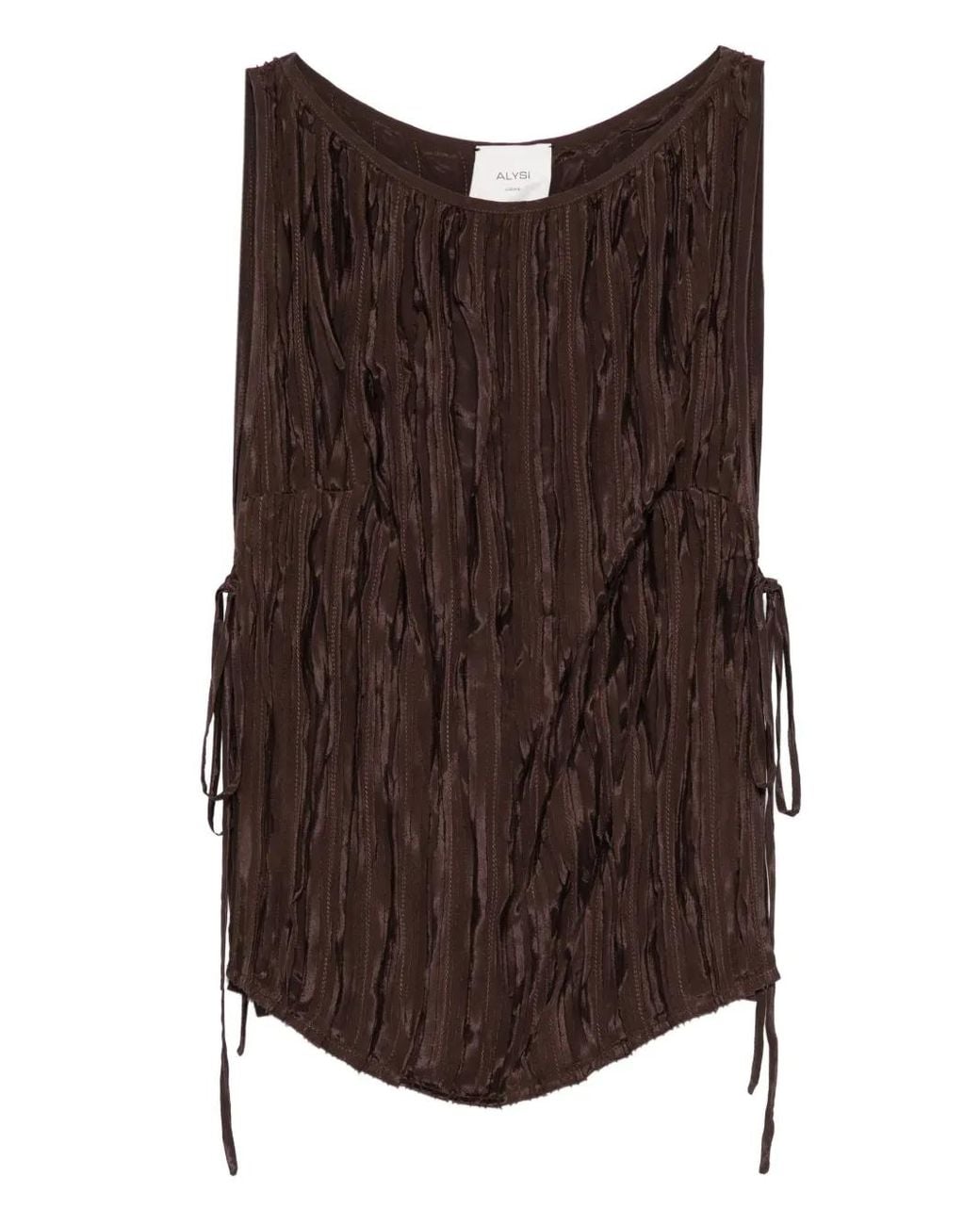Women's Brown Tie-Detail Pleated Top