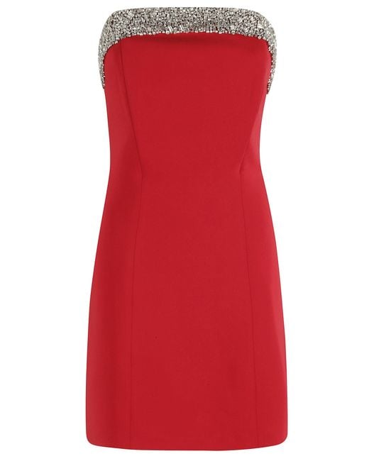 Dress - Amen - Red colour - Crepe fabric - Bustier neckline with rhinestone trim - Jewel applique top part - Back zipper closure Colour: red