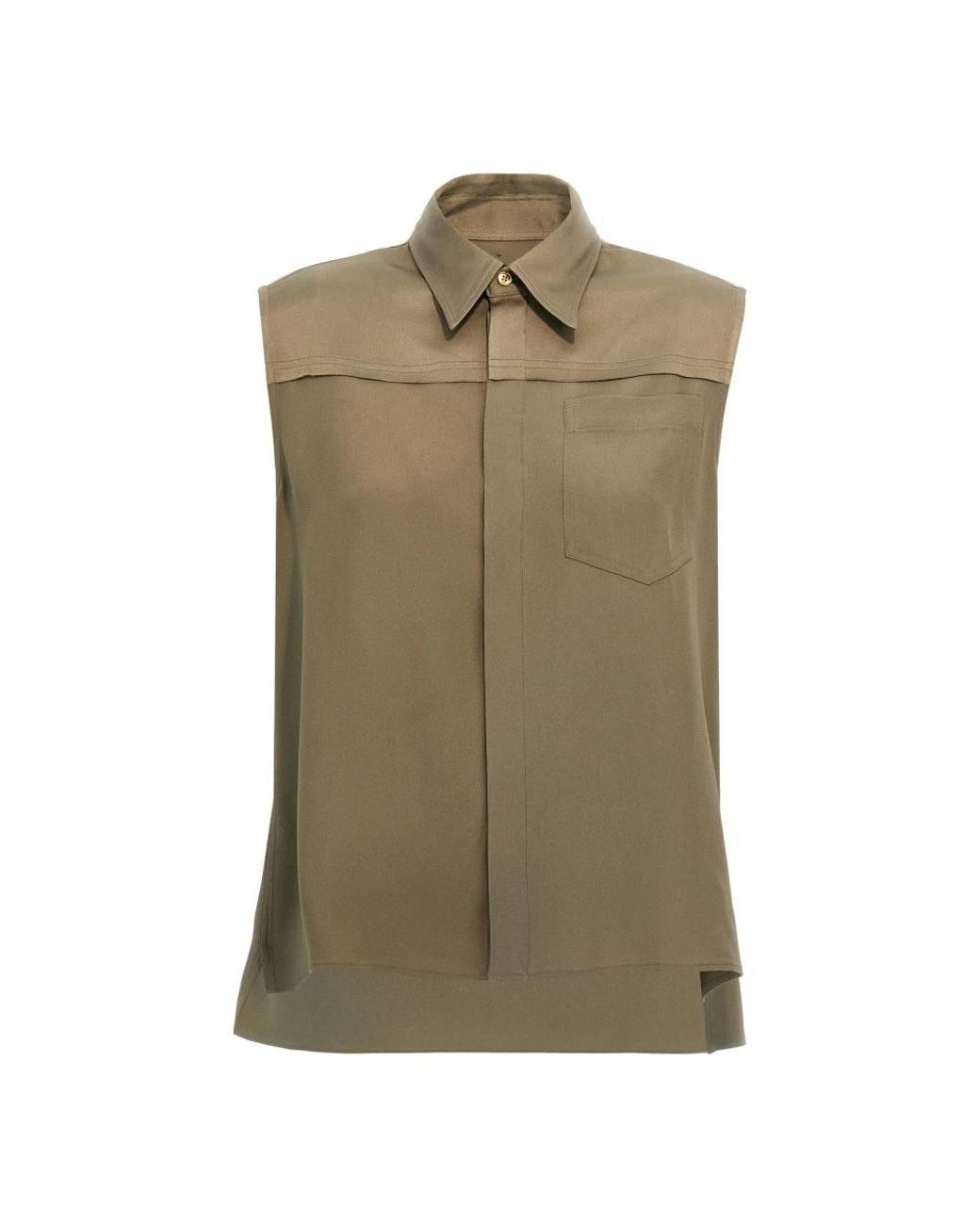 Elevate your wardrobe with this stylish Ami Paris sleeveless shirt in green. Featuring a concealed front button fastening, chest patch pocket, short side slits, and a pointed flat collar, this shirt is perfect for the modern woman. Colour: green