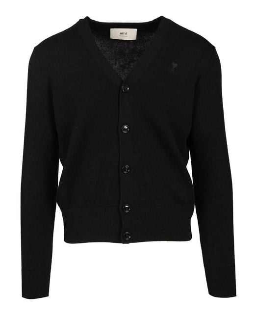 Wool Cardigan With Contrasted Ami De Coeur - Black
