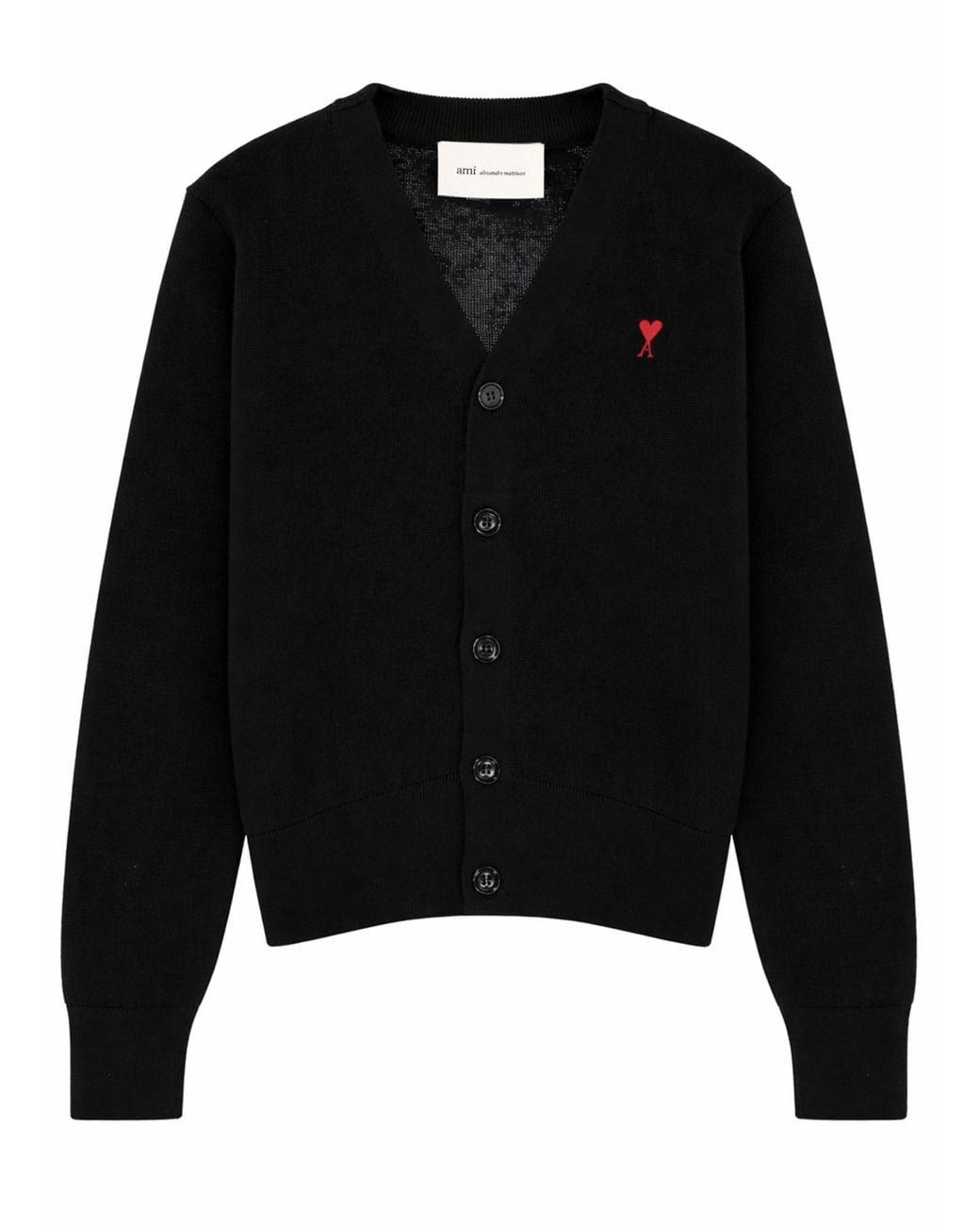 Wool Cardigan With Contrasted Ami De Coeur - Black