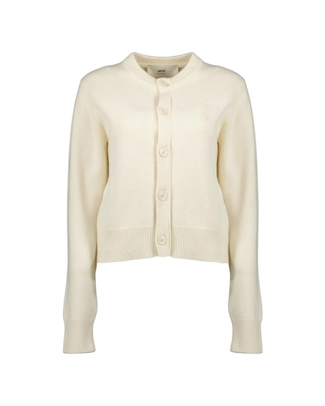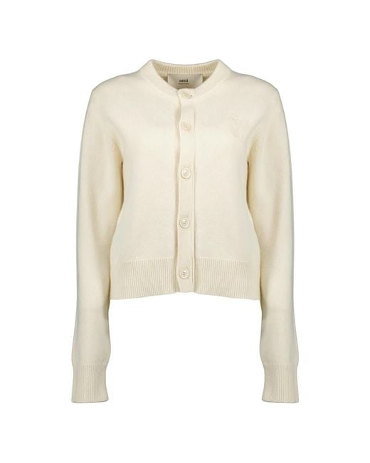 Elevate your winter wardrobe with the AMI heart white cardigan from the AMI Paris brand. Crafted from a luxurious blend of wool and cashmere, this piece is a must-have from the Autumn-Winter 2025 collection for women. Colour: natural