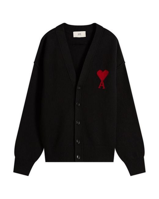 A refined staple with signature charm, the felted merino wool knit ADC cardigan from AMI Paris blends softness and structure. Expertly crafted in Portugal from lightweight felted merino wool, it offers a clean silhouette with a tactile finish. The Ami de Coeur logo at the chest adds a quiet nod to the brand’s elegant design language. 100% Merino Wool, V-Neck, Ribbed Trims, Button Closure, Knit Branding, Style Code: H25UKC367-018-009H25, Shop All Men's AMI Paris Cardigans, Shop All Men's Cardigans, - AMI Paris Men's Felted Merino Wool Knit ADC Cardigan Noir/Rouge