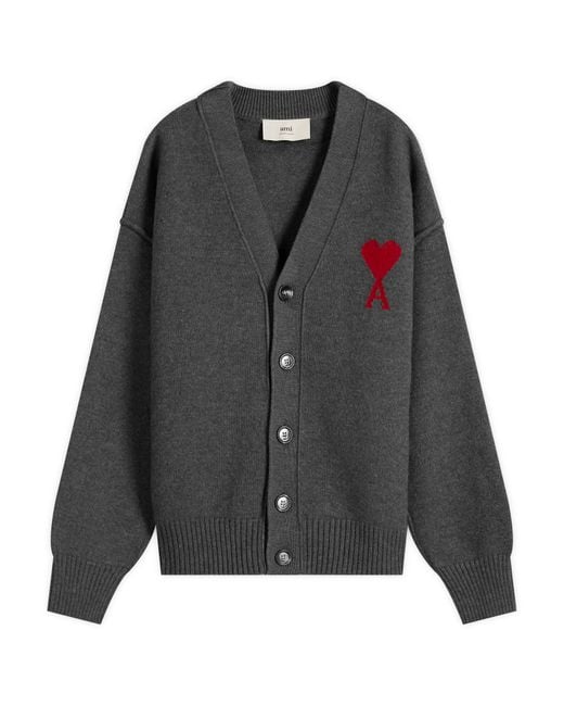 A refined staple with signature charm, the felted merino wool knit ADC cardigan from AMI Paris blends softness and structure. Expertly crafted in Portugal from lightweight felted merino wool, it offers a clean silhouette with a tactile finish. The Ami de Coeur logo at the chest adds a quiet nod to the brand’s elegant design language. 100% Merino Wool, V-Neck, Ribbed Trims, Button Closure, Knit Branding, Style Code: H25UKC367-018-084H25, Shop All Men's AMI Paris Cardigans, Shop All Men's Cardigans, - AMI Paris Men's Felted Merino Wool Knit ADC Cardigan Gris Chine/Rouge