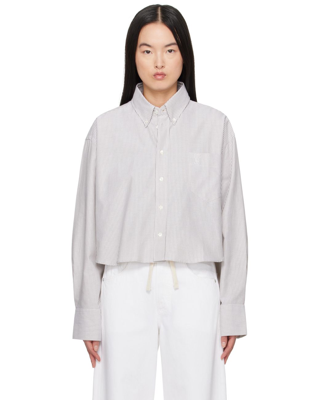 - Khaki & Off- Cotton Cropped Oversized Shirt