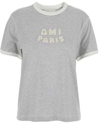 Ami Paris Women's Blue Logo-Patch T-Shirt