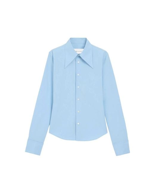 Ami Paris Sharp Collar Adjusted Shirt is a fitted shirt from Ami Paris featuring a defined straight-point collar and button closure, designed for smart-casual wear and polished layering. Key attributes: Blue | Cotton poplin | Button closure | Mother-of-pearl buttons | Straight-point collar | Long sleeves | Curved hem | Dimensions & fit: Fitted fit | Composition & care: Cotton poplin