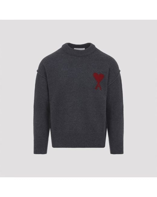 Ami ADC Crewneck Grey and Red Wool Jumper. Crafted from grey wool, inside out seams, round neckline, red contrasting logo inlay on the chest, dropped shoulders, long sleeves, ribbed edges.. Gender: Men. Material: 100%WOOL. Color: GREY. Made in: Portugal. Product ID: UKS838.018_084. *Import tax/duty will be calculated at checkout (If applicable) Colour: blue