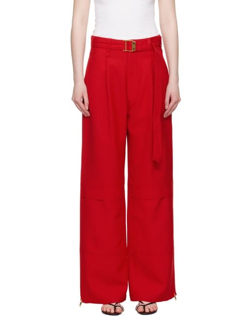 Women's Red Wool Cargo Trousers