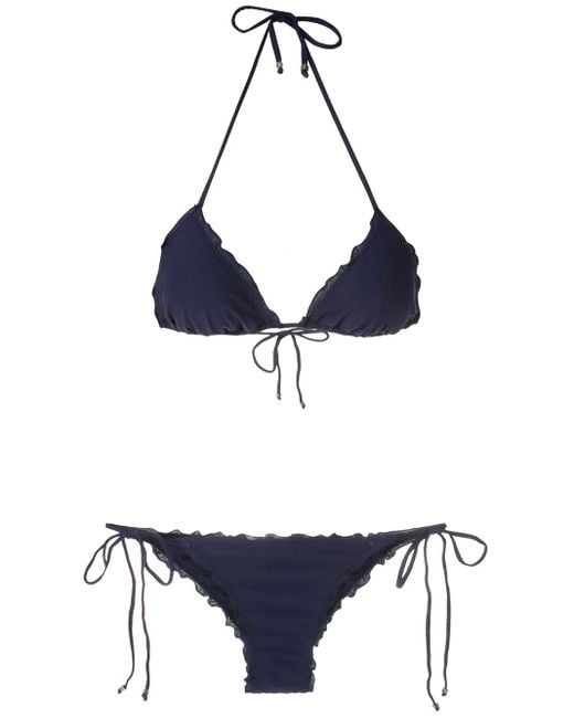 Women's Blue Ruffled Triangle Bikini Set