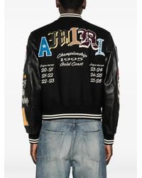 Go to SSENSEWool- and nylon-blend serge and grained leather bomber jacket. Logo patch appliqués and embroidery throughout. Colour: brown