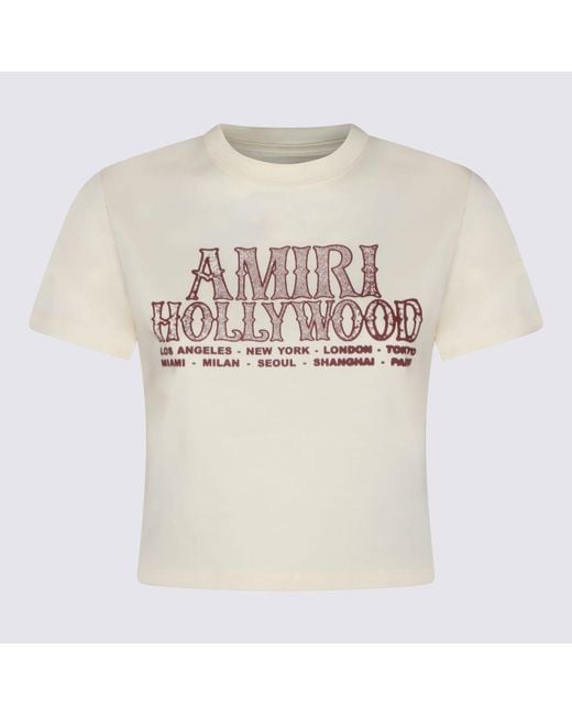 Ivory cotton t-shirt from Amiri featuring crew neck, short sleeves, frontal stamp and crop length.Composition: _, 100% Cotton