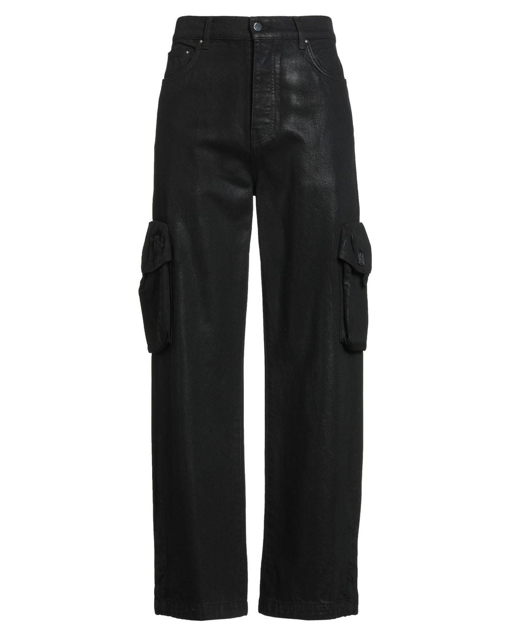 AMIRI. cargo jeans, denim, coated effect, plain colour, brand logo, coloured wash, high waisted, regular fit, button fastenings, five pockets, do not dry clean, do not bleach, do not tumble dry, do not iron. 100% Cotton.