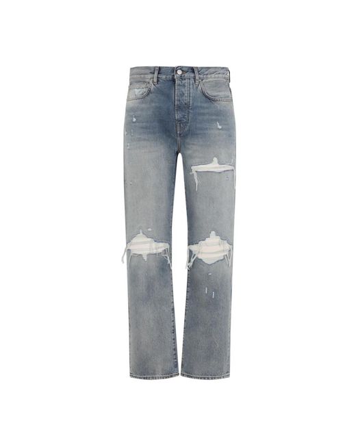 Amiri Amdngh 1085 Jeans blend a contemporary straight-leg silhouette with an Antique Indigo washed denim and artisanal distressing. Designed for casual, everyday wear, they pair easily with tees and knitwear. Key attributes: Antique indigo | Blue | Cotton | Zip and button closure | Five-pocket design | Belt loops | Back logo patch | Straight leg | Distressed detailing | Faded wash | Dimensions & fit: Contemporary fit | Straight fit | Composition & care: 100% cotton | Dry clean only.