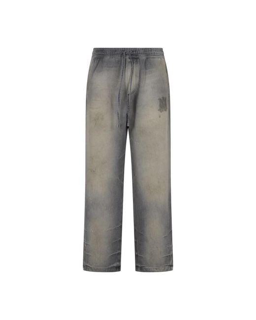 Amiri Relaxed Baggy Jean combines the brand's signature hand-distressed denim with a relaxed, adjustable silhouette. Designed for an elevated casual look, it pairs vintage-inspired finishing with modern details like an elastic drawcord waistband and snap-adjustable ankles. Key attributes: Grey | Perfect antique black | Cotton | Non-stretch denim | Garment-dyed finish (may bleed or transfer color) | Elastic waistband with drawcord | Ankle snap buttons for adjustable hem | Four-pocket styling | Hand-distressed finish | Fading and whiskering details | Contrast stitching | Embroidered logo patch | Button/snap ankle vents | Dimensions & fit: Waist: 31.5" (size M) | Rise: 14" (size M) | Hip: 45" (size M) | Inseam: 33" (size M) | Relaxed fit | Loose silhouette | Composition & care: 100% cotton | Professional dry clean in hydrocarbons, mild process. Iron at 110°C. Do not wash. Do not bleach. Do not tumble dry. Colour: grey