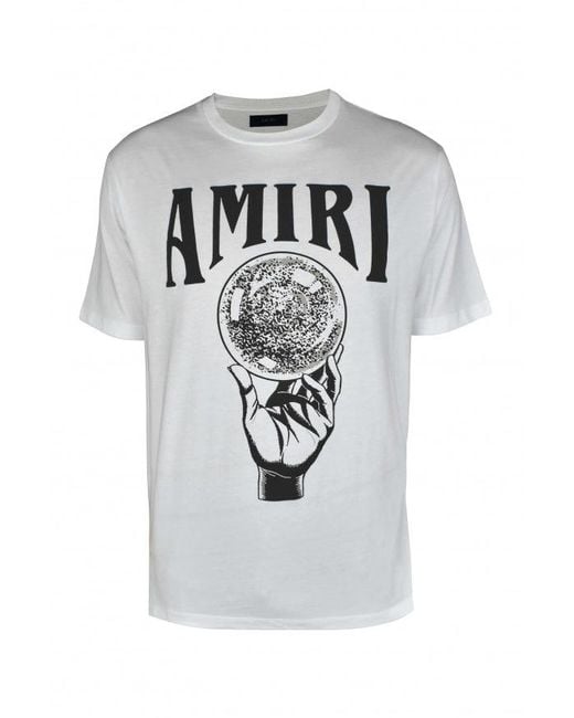White cotton Amiri T-shirt. Black graphic prints of the logo and a crystal ball at the front. Round neck. Short sleeves. Colour: grey