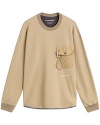 Go to BaltiniThis And Wander T-shirt enhances outdoor style with its lightweight nylon made from recycled materials. It includes a crew neck, short sleeves, and zippered chest pockets, showcasing a bold grey logo print on
