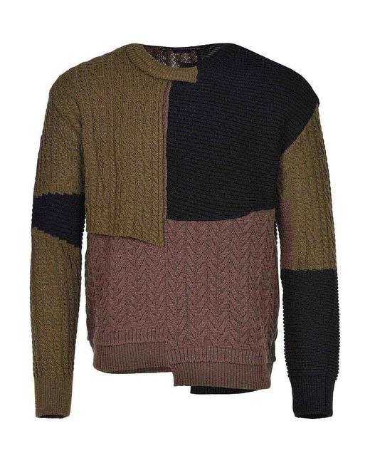 Andersson bell jumper made of multicolour wool blend.ribbed crew neck.long sleeves.ribbed cuffs.color block patchwork with an asymmetric design.asymmetric ribbed hem.69% cotton 31% wool Colour: grey