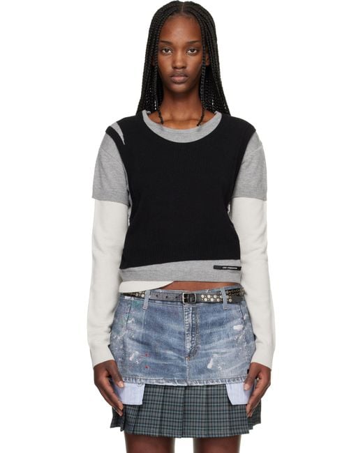 Knit wool jumper. · Layered and asymmetrical construction · Rib-knit crewneck, hem, and cuffs · Logo patch at front hem · Logo plaque at back collar Supplier color: Black Colour: black