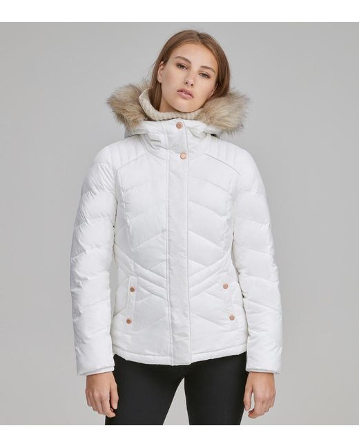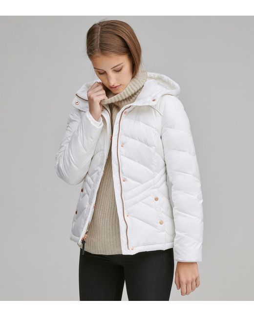Women's White Mallory Chevron Quilted Down Coat