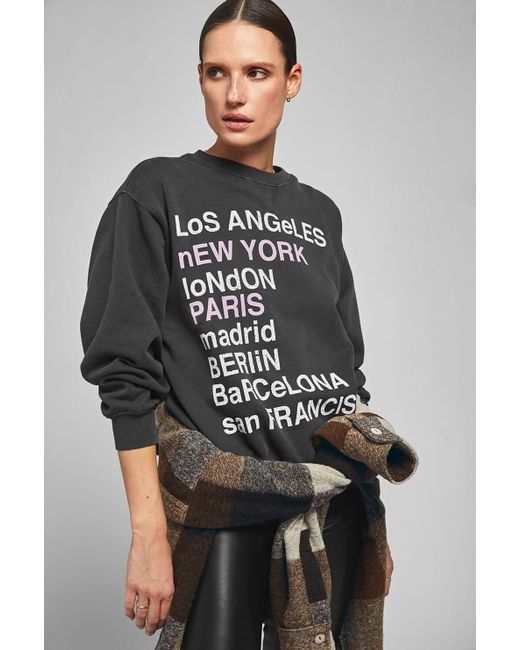 A nod to some of our favorite cities, the City Love Sweatshirt features a butter-soft texture and a lived-in feel for an elevated take on off-duty loungewear. Charcoal-100% Cotton-Machine Wash Cold-Made in Turkey Style Tip: Throw this slouchy pullover on top of leather trousers for a street-style worthy look ready for anything. Anine Bing City Love Cotton Sweatshirt in Charcoal. Colour: multicolour