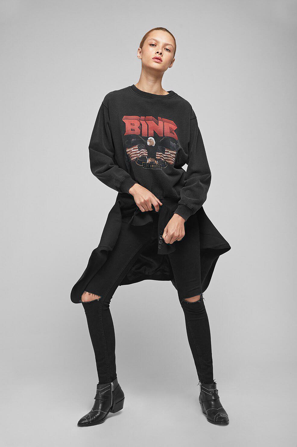 This long-sleeved version of our bestselling Vintage BING Tee is cut from buttery soft cotton for cosy layering. The high crew-neck and oversized silhouette offers off-duty ease, perfect for throwing atop your favorite bottoms. Black. 100% Cotton. Machine Wash 30c. Made in Turkey Style Tip: Pair this pullover with distressed black jeans and ankle boots for a dose of Americana mixed with rocker style. Now Let's Find Your Fit: This pullover is intentionally oversized, we suggest taking your usual with this one. Vintage Bing Sweatshirt in Black. Colour: multicolour