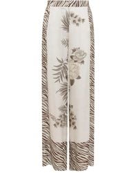 Go to YOOXGabardine, no appliqués, floral design, zebra stripes, high waisted, wide leg, regular fit, 1 button, zipper closure, multipockets, chinos. 100% Viscose. Colour: grey