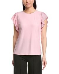 Anne Klein Women's Black Flutter Sleeve Pleated Blouse