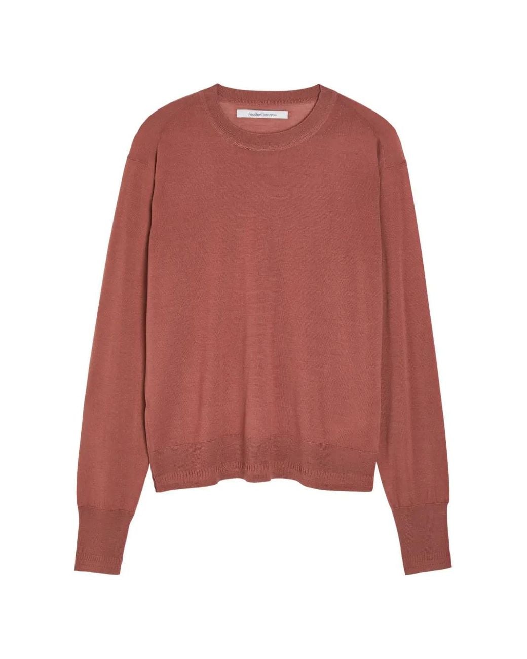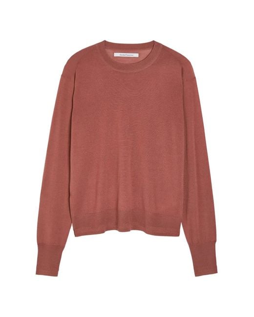 Red round neck rib-knit trim long sleeves fine knit Size: XS. Gender: Female. Material:Wool. Colour: red