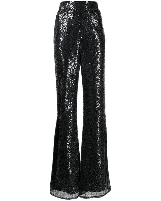 Women's Black High-Waisted Sequin-Embellished Trousers