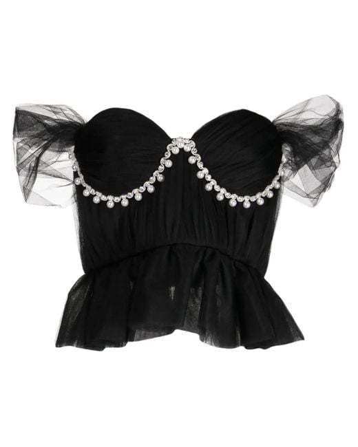 Women's Black Faux-Pearl Embellished Off-Shoulder Blouse