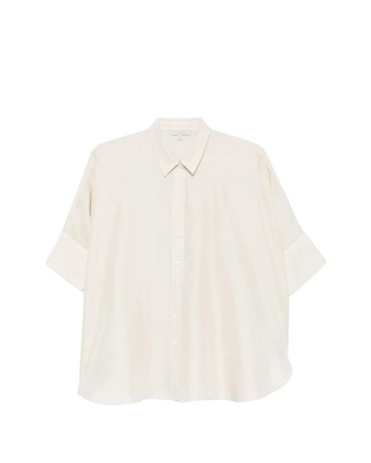 White cream pointed collar button fastening dropped shoulders curved hem Size: 42. Gender: Female. Material:Silk. Colour: white
