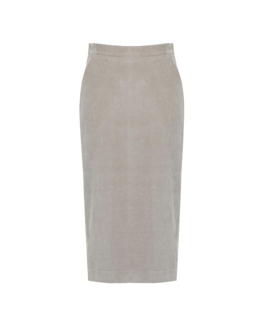 Antonelli Firenze Midi Velvet Skirt features a soft velvet finish with a rear zip and side slit pockets, ideal for polished day-to-evening looks. Key attributes: Beige | Velvet | Rear zip fastening | Two side slit pockets | Midi length | Velvet texture | Side slits | Dimensions & fit: Model height 179 cm, wears size 42 Colour: grey
