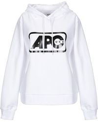 Violet cotton stretch logo print hoodie from A.P.C. featuring a drawstring hood, long sleeves and a straight hem. Material:Polyester/Cotton. This item may not be on sale in France, UK, Italy, Belgium and Switzerland. Colour: purple