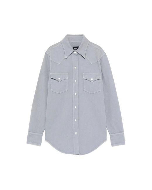 A.p.c. Western Shirt in cotton, featuring a western-style yoke and a snap-button front. Designed for versatile everyday wear and easy layering. Key attributes: Grey | Grey | Cotton | Snap-button front | Two chest pockets with buttoned flaps | Classic collar | Western-style yoke | Pointed pocket flaps | Mother-of-pearl snap buttons | Dimensions & fit: Straight cut | Runs true to size | Composition & care: 100% cotton | Machine wash cold, inside-out. Colour: blue