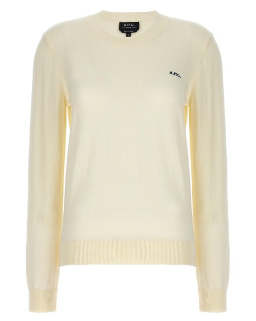 'Victoria' cotton crew neck sweater with contrast logo embroidery on the chest.SpecificationValueBrandA.P.C.Composition100% cottonMade InTurkeySize & Fittrue to size fitColorBeigeGenderWomenSeasonSpring Summer 2024