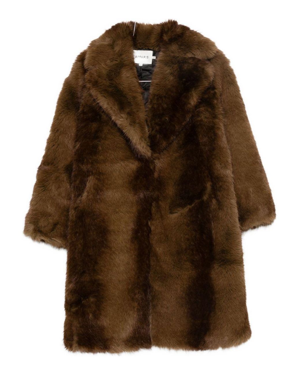 Brown notched lapels long sleeves mid-length straight hemComposition: Artificial Fur, 100% Colour: brown