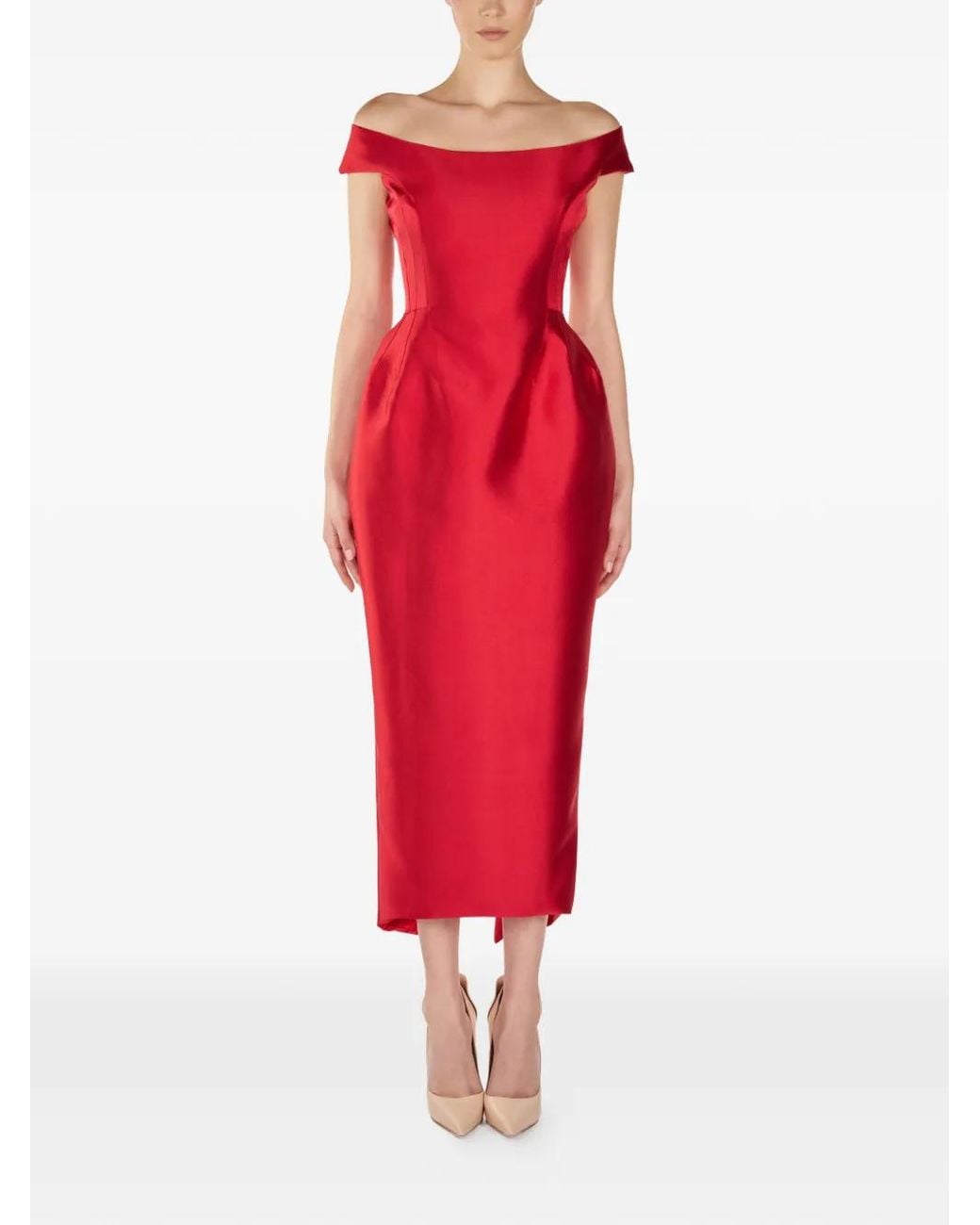 Women's Red Off-Shoulder Midi Dress
