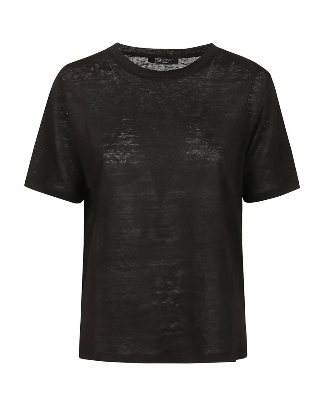 Black linen material short sleeves round neck Size: 44. Gender: Female. Material:Linen/Flax. Colour: black