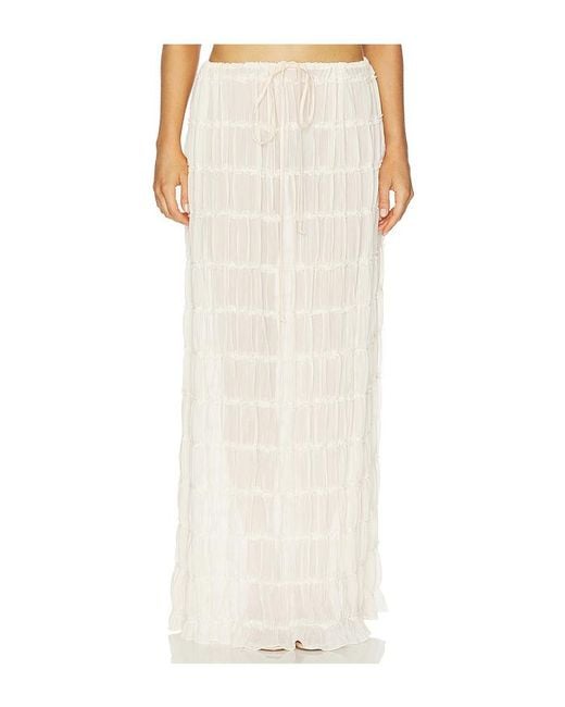 Arcina Ori Juliette Skirt in Cream. Size L. Also in M. Arcina Ori Juliette Skirt in Cream. Size M. Self: 100% Polyester. Cold gentle hand wash. Elastic waistband with exterior self-tie drawstring. Unlined. Pull on style. Garment is made with a semi-sheer fabric, undergarments can show through. Skirt measures approx 40 in length. AAOR-WQ4. AO24SK001 CREAM.