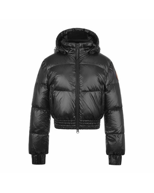 Women's Black Yukon Cropped Hooded Funnel Neck Short Puffer Jacket